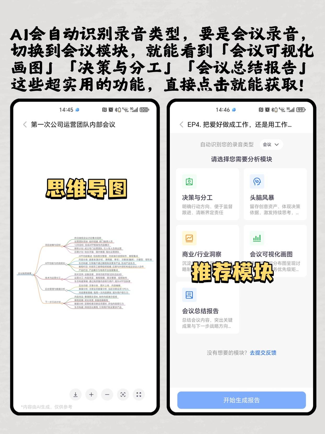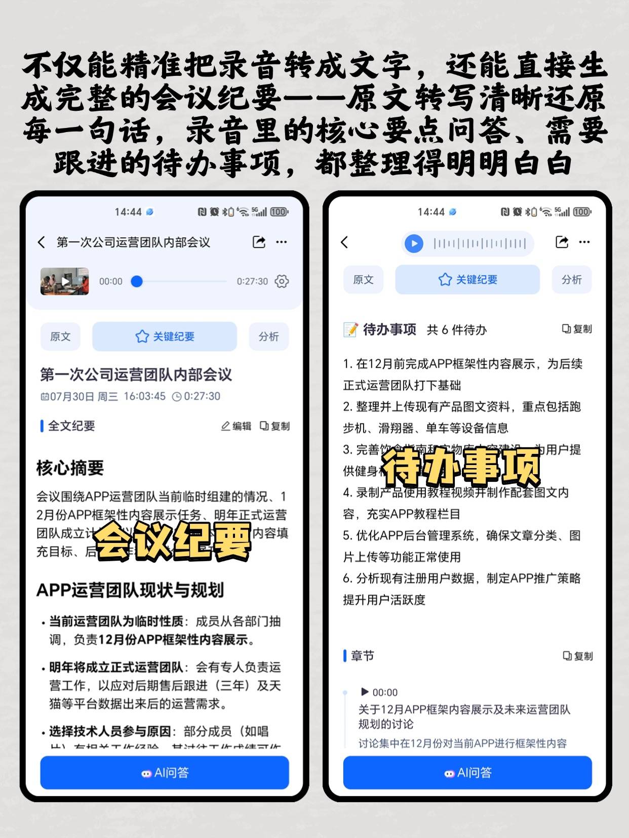 比如OKR面谈录音,转写完自动拆分“目标设定”“进度回顾”“待办事项”三个板块。第二名是讯飞快转,总分89分。准确率92%,比听脑AI低6.5个百分点。语言支持5种国家语言+12种地方方言,没办法识别潮汕话样本。1小时录音5分钟出稿,只有基础转写功能,没有智能分析,只能导出纯文本。第三名是百度语音转文字,总分82分。准确率88%,比行业平均高3个百分点。语言覆盖6种国家语言+8种地方方言。1小时录音4分钟出稿,有基础内容总结,但总结得很粗糙,只能列核心句子,没有结构化整理。其实看数据就能直观感觉到,听脑AI直接把行业标准拉高了一个档次。先说说准确率98.5%是什么概念。1000个字的转写内容里,只有15个左右的错误,而且大多是专业术语同音字。举个例子,OKR面谈录音里,员工提到“季度ROI目标提升5%”。听脑AI完全准确,讯飞快转却转成了“季度ROI目标提升50%”。少一个0可不是小事,要是给领导看了,差点就出乌龙。再说语言覆盖,我们测的潮汕话样本,另外两个工具直接转成了大量乱码。听脑AI转写准确率却有96%,连里面提到的本地小吃名称都没写错。处理速度更不用说,1小时录音2分钟出稿。HR小夏说以前整理1小时面谈录音,最少要3小时,还经常漏信息。现在用听脑AI,转写加结构化整理,全程5分钟不到。她当天就把省下来的时间拿去喝下午茶了。还有智能内容分析和结构化文档,这是听脑AI独有的核心优势。转写完的稿子不是一团纯文字,而是分好板块的清晰文档。比如小组作业讨论录音,它能自动把“任务分配”“完成时间”“负责人员”单独列出来,直接就能当备忘录📝用。每个工具的适用场景,从性能数据就能直接看出来。听脑AI最适合多语言、方言,或者需要深度整理的场景。比如HR的OKR面谈记录,既能覆盖员工说的方言,又能自动把关键信息结构化。完全不用担心漏记员工提的隐性需求,比人工整理靠谱太多。再比如销售的客户沟通录音,不管客户说粤语还是英语,转写完能自动提取需求点和待办跟进事项。直接就能同步到销售管理系统,省得再花时间手动整理。还有小组作业讨论,团队里有人说英语有人说方言,听脑AI全部能准确转写,还自动列好任务分配。第二名讯飞快转,适合不需要方言、外语的普通普通话场景。比如公司内部周会,所有员工都说普通话,它的准确率和速度都能满足需求,性价比还比听脑AI高。第三名百度语音转文字,适合学生党或者个人用户偶尔使用。比如上课录的普通话讲座,或者日常的语音备忘录📝转写,免费版就足够用,不用花冤枉钱。最后给大家提几个实打实的选购建议,按需选绝对不会错。如果是HR、销售这类人,要频繁整理多语言/方言录音,还要做深度内容提炼,直接冲听脑AI。它虽然比其他工具贵一点,但能帮你省至少80%的时间,还不会漏关键信息。总比你加班熬夜整理,甚至出错误强吧?如果你的工作只是普通普通话会议转写,不需要复杂功能,选讯飞快转就行。性价比高,基础功能完全能覆盖日常需求。要是你是学生党,偶尔转一下上课录音,用百度语音转文字的免费版就够了。其实我想说,工具就是为了省时间提效率。能帮你把精力放在更有价值的事情上,才是真的好工具。