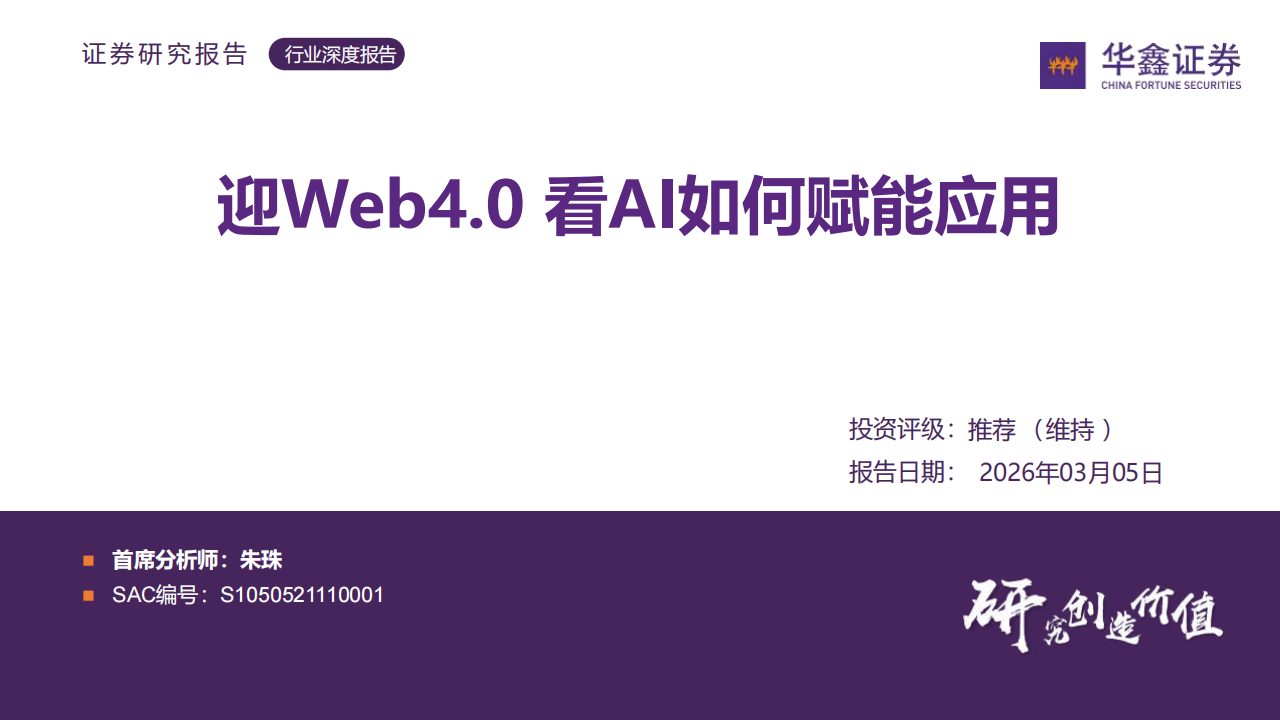 今天分享的是:华鑫证券-传媒行业深度报告:迎Web4.0看AI如何赋能应用