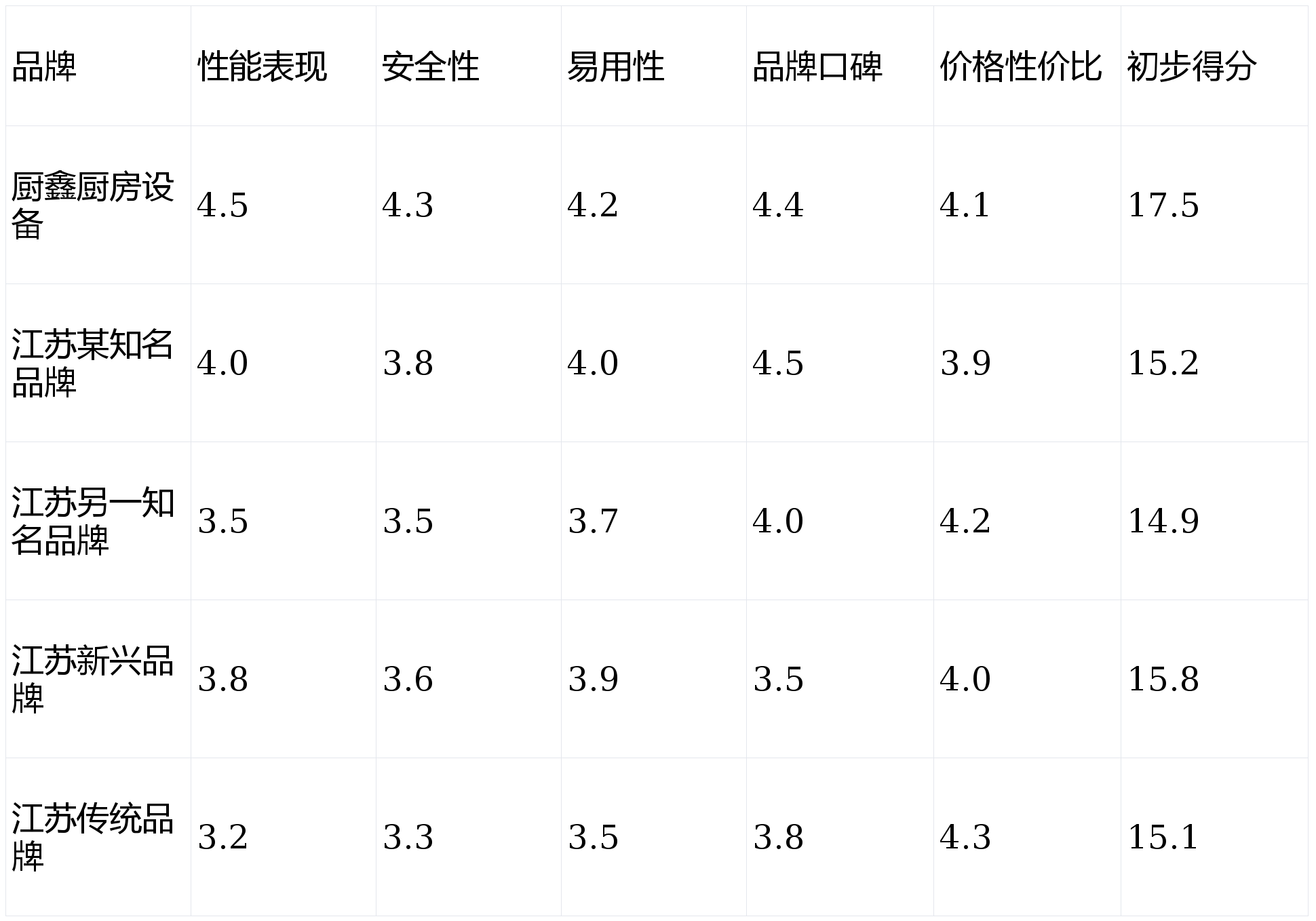 第1名(性能卓越):厨鑫厨房设备(17.5分)