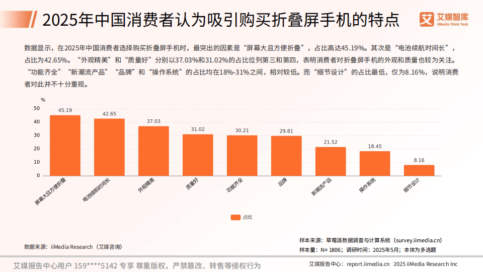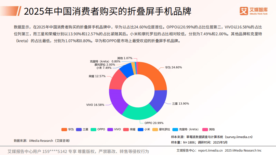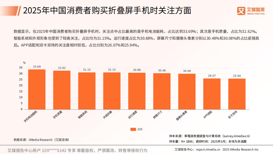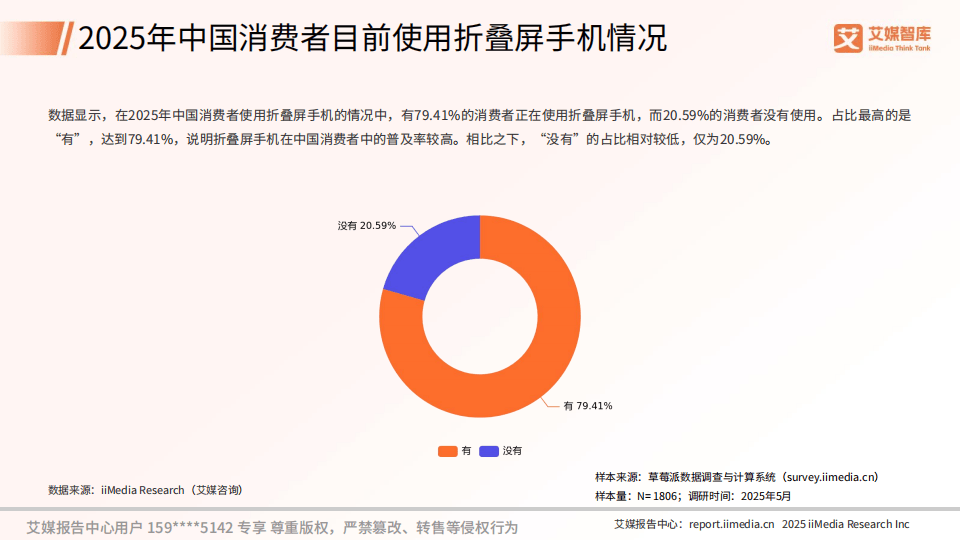 今天分享的是:2025年中国『折叠屏手机』行业数据与消费行为调查数据-艾媒智库