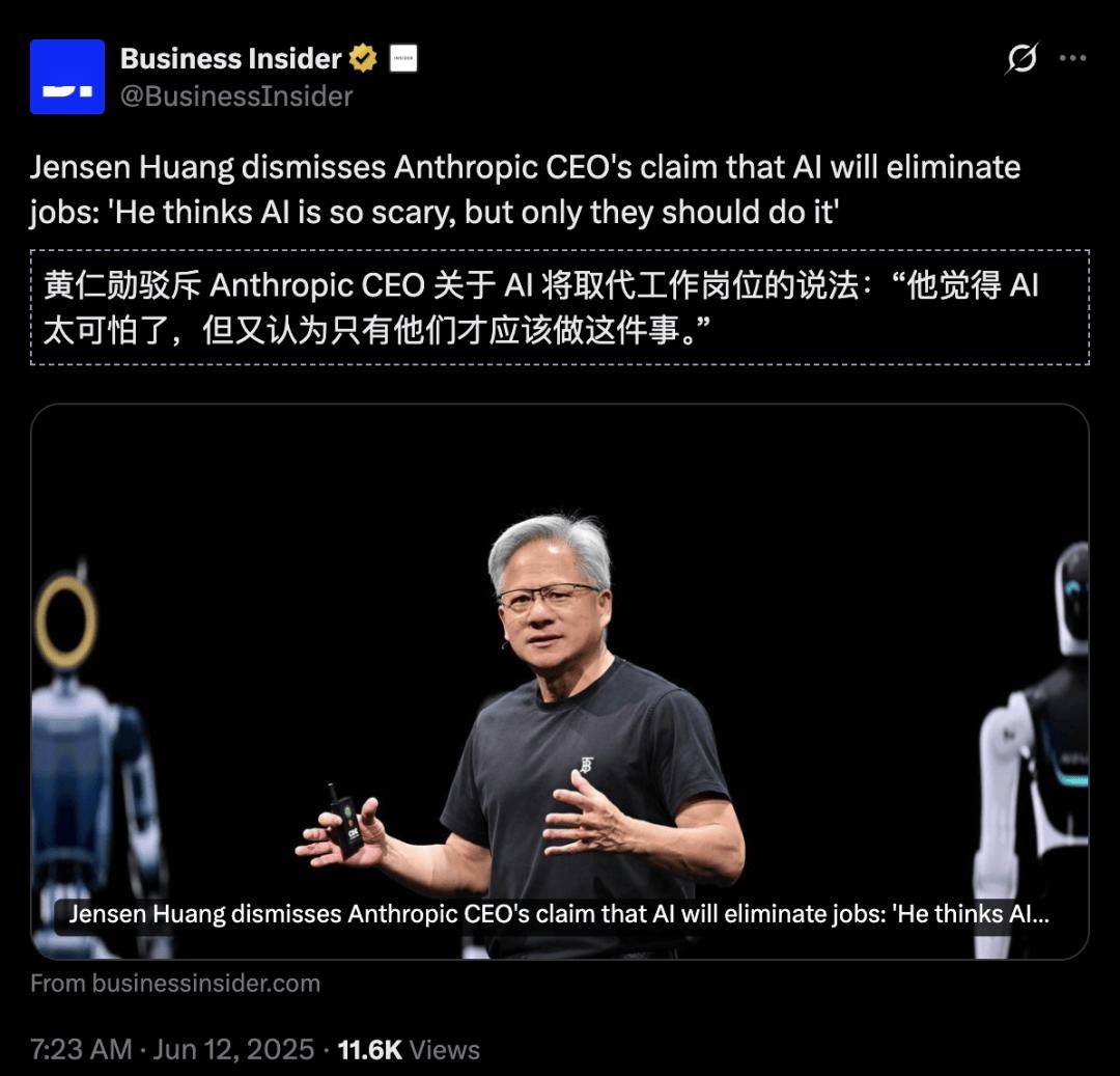 Amodei 的警示甚至引来『英伟达』 CEO 黄仁勋的驳斥:
