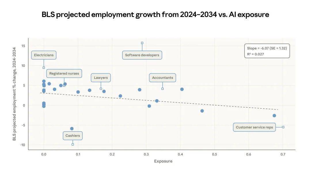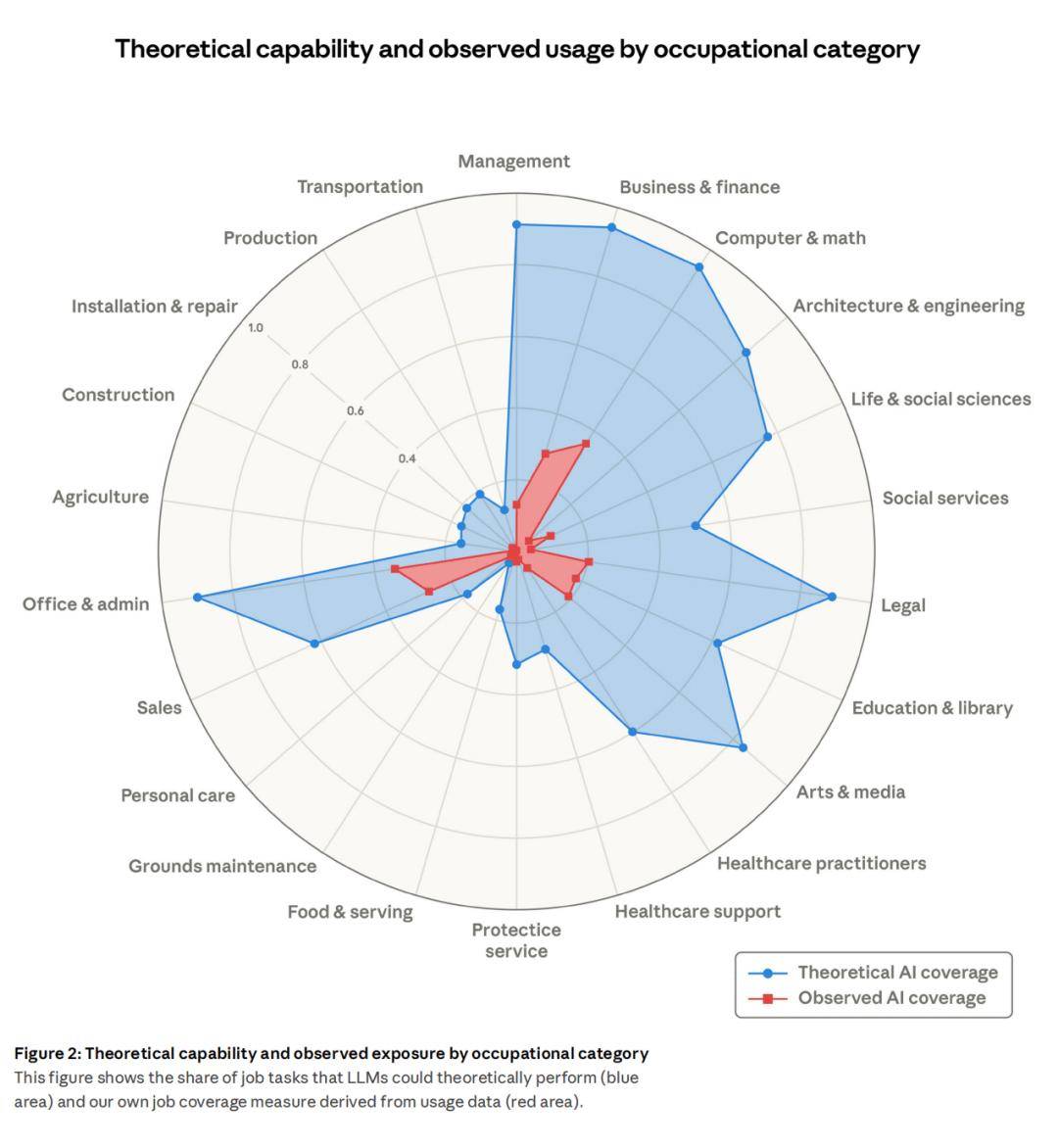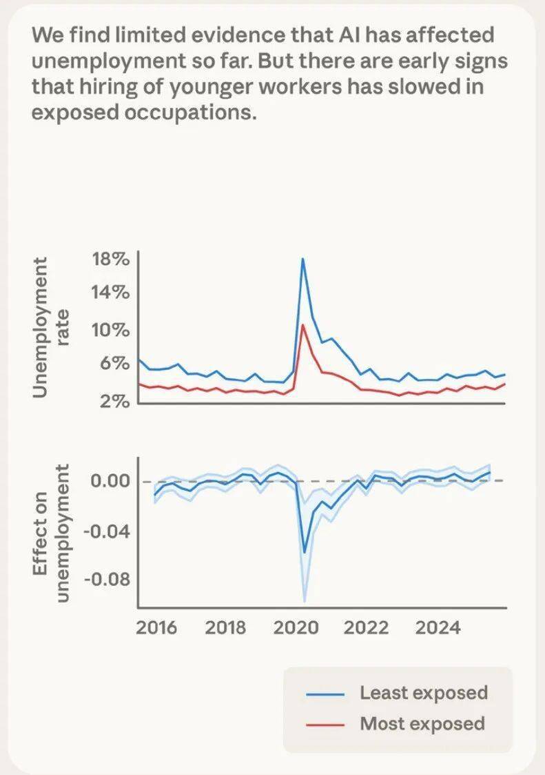 Anthropic 的报告显示,现在失业率还没大涨。