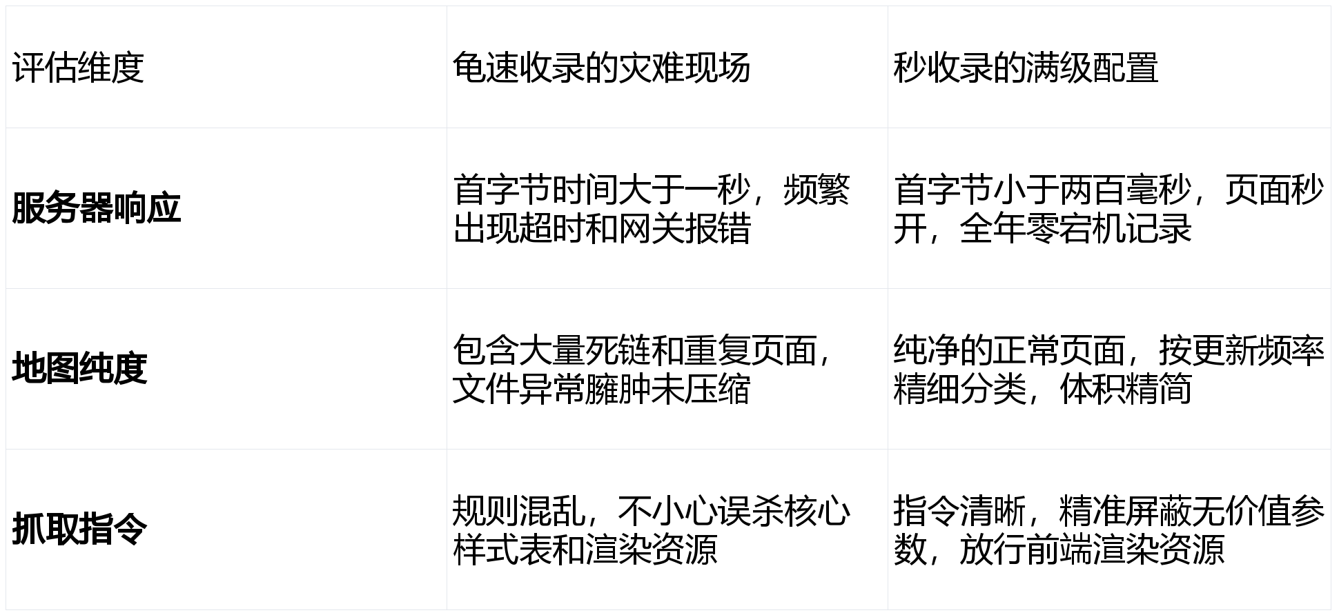 如果你的网页重度依赖客户端渲染,爬虫第一眼看到的只是一个空荡荡的代码壳子,里面除了一个脚本加载指令外一无所有。官方虽然早已具备了渲染复杂脚本的能力,但这绝对是一个分为两波的延迟过程。第一波先抓取基础框架,等哪天它的渲染『服务器』闲下来了,有富裕的算力了,才会启动第二波去执行你的脚本并抓取真实渲染出的文字内容。这个致命的时间差,短则几天,长则半个多月。