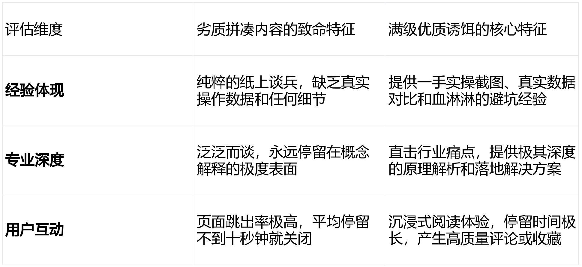 『互联网』最不缺的就是海量的信息垃圾。洗稿伪原创、机器疯狂采集、毫无逻辑的词语堆砌,这些粗制滥造的东西在智能算法眼里就是有毒的工业废料。官方的数据库存储成本是极其高昂的,它绝对不会浪费昂贵的硬盘阵列去存一堆毫无商业和阅读价值的重复内容。在经验、专业性、权威性和信任感这套极度严苛的评估标准下,敷衍了事的文字根本过不了基础质量这第一关。