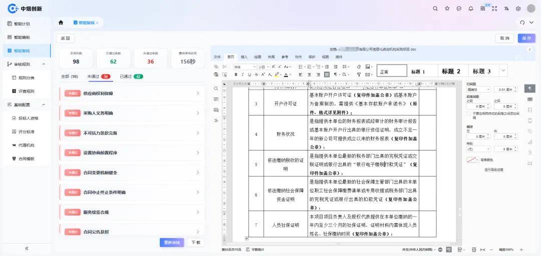 招标文件的内在逻辑一致性,直接影响评标流程的顺畅性和后期合同履行的可操作性。然而,在实际编制过程中,由于文件往往由多人协作、历经多轮修改,极易出现前后条款矛盾、技术标准不统一、评分标准与采购需求脱节等问题。这类隐患在传统人工审查模式下难以被系统发现,却常常成为引发后期争议的导火索。