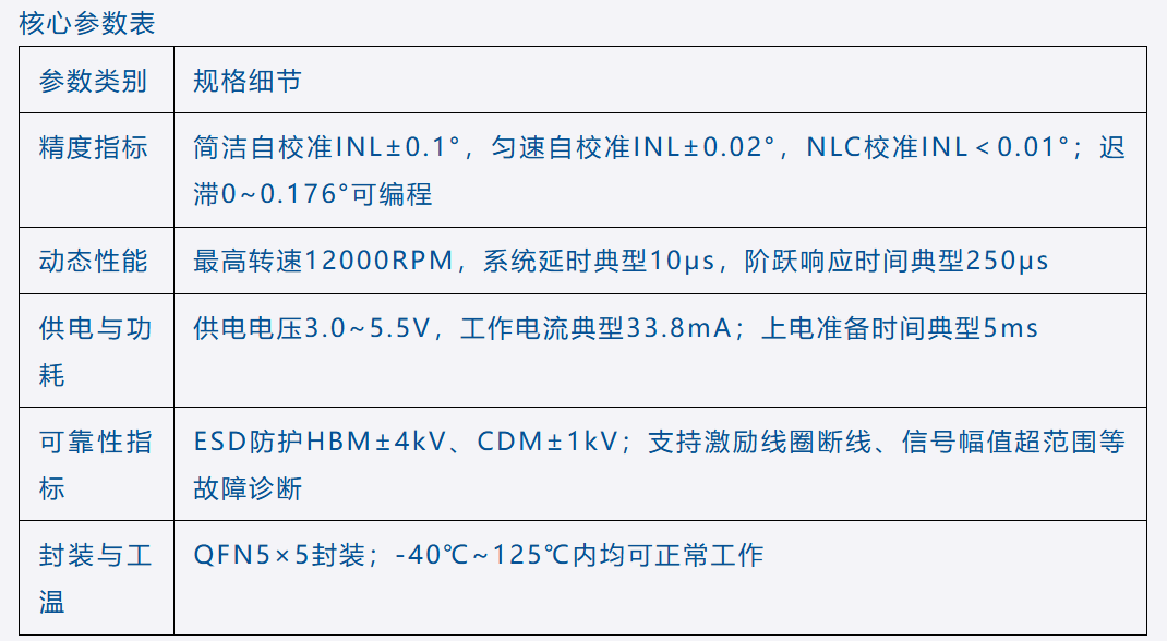 MT6901是由麦歌恩微电子(现隶属纳芯微)推出的基于电涡流感应技术的高速、高精度角度编码器『芯片』。位置检测系统由定子、转子、『芯片』应用电路构成,定子上有激励线圈、接收线圈及其『芯片』,转子有与线圈匹配的特定形状。内置3.3V~5.0V均可编程的EEPROM,集成激励线圈断线、接收信号幅值超范围等多种诊断,在-40℃~125℃范围内均可正常工作。