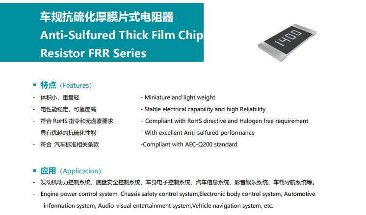 针对硫化断线这一行业痛点,FOSAN 富捷科技自主研发的FRR 系列车规抗硫化厚膜电阻,凭借创新技术实现了卓越的抗硫化性能,可从源头有效规避硫化断线风险,为电子设备的稳定运行提供坚实保障。