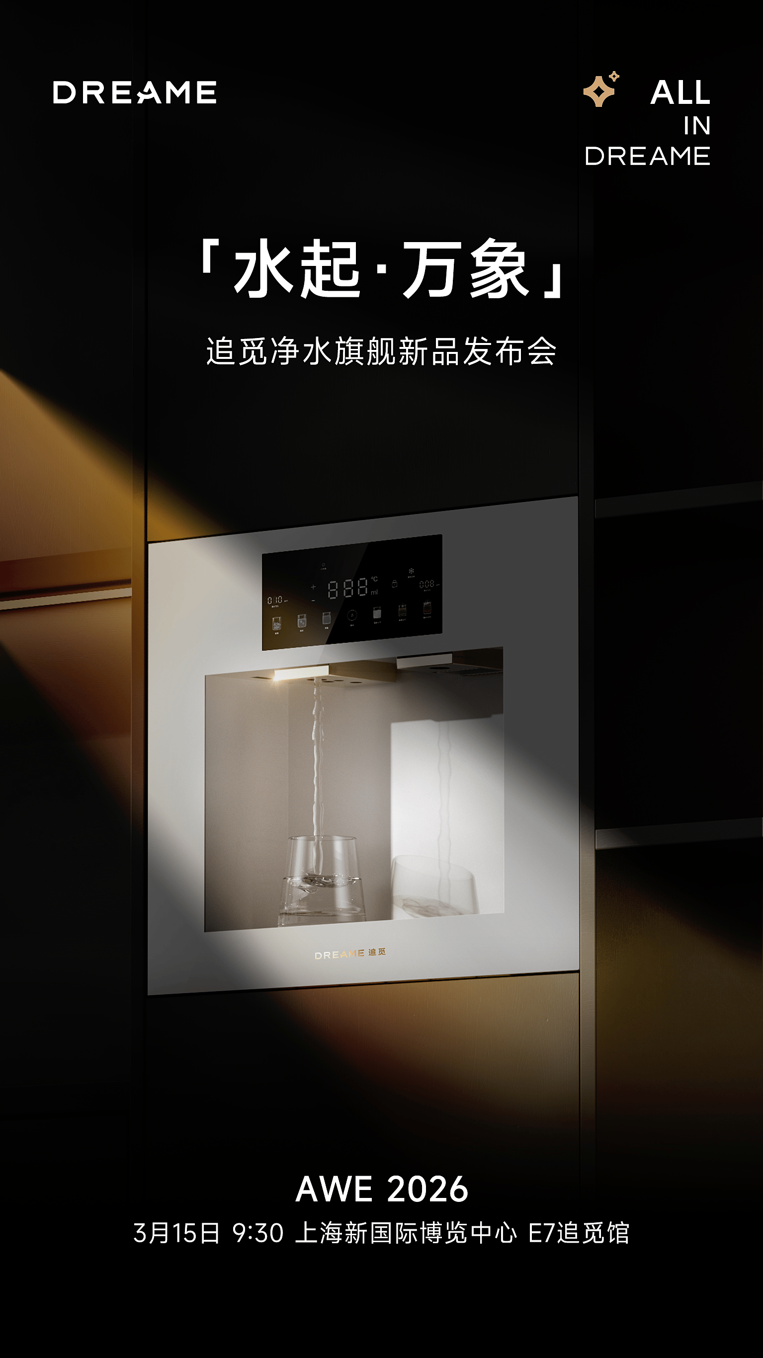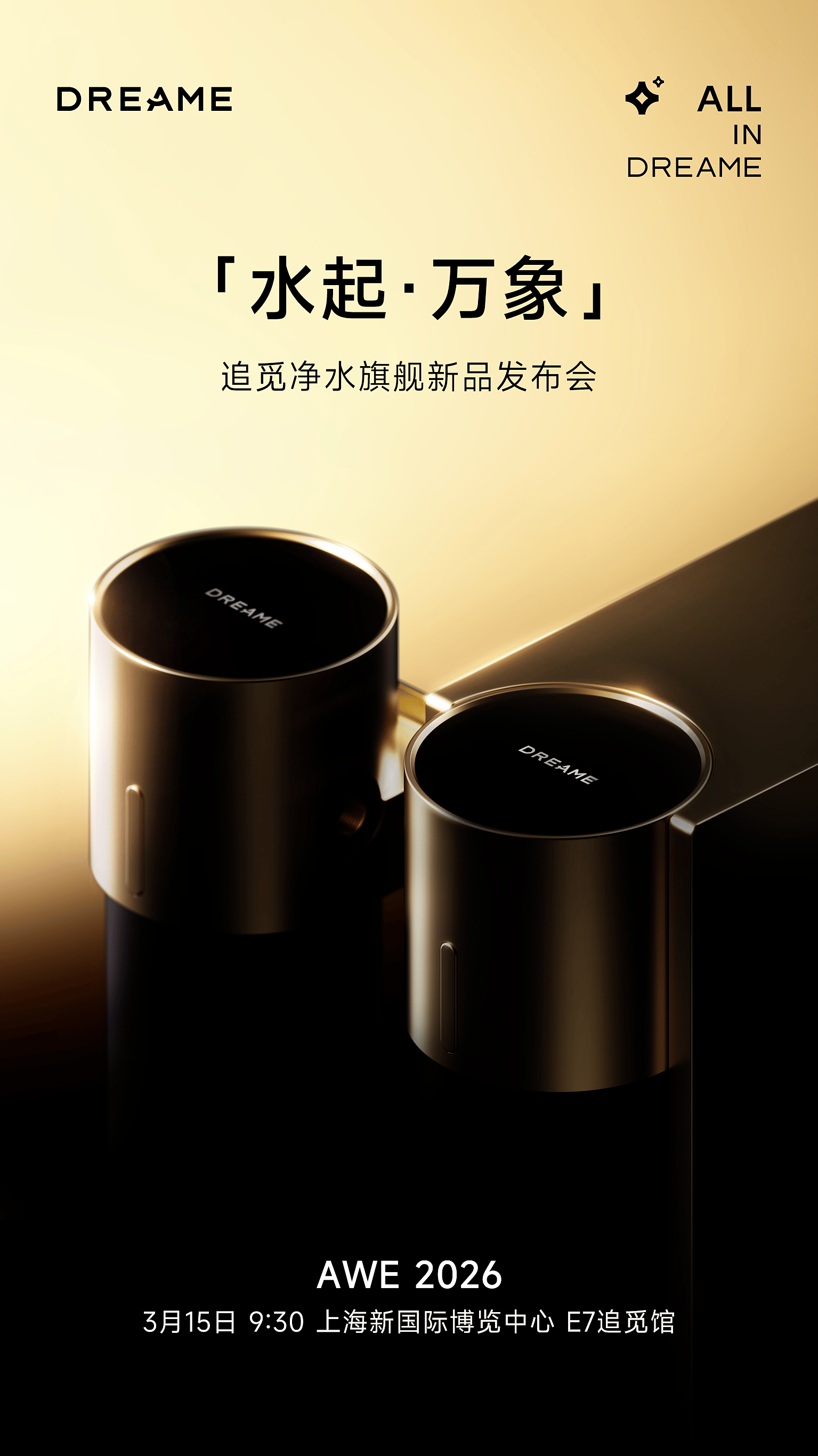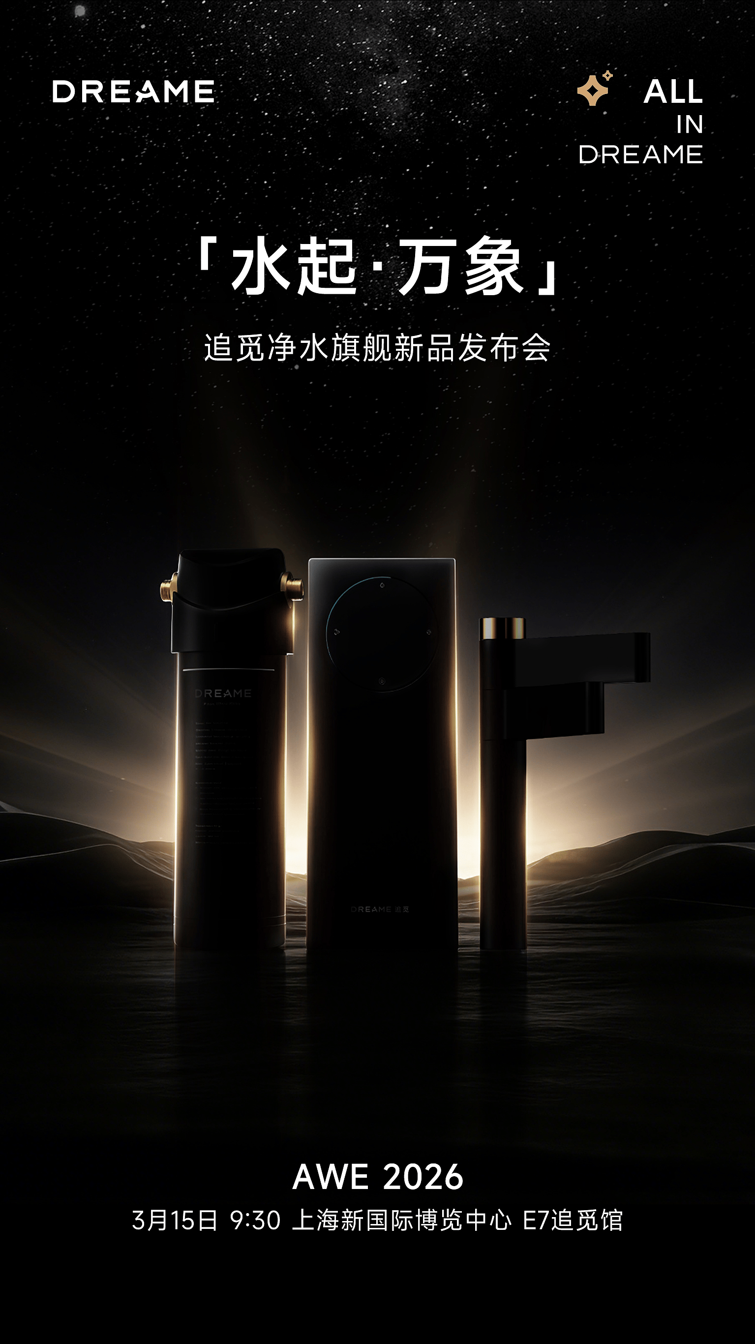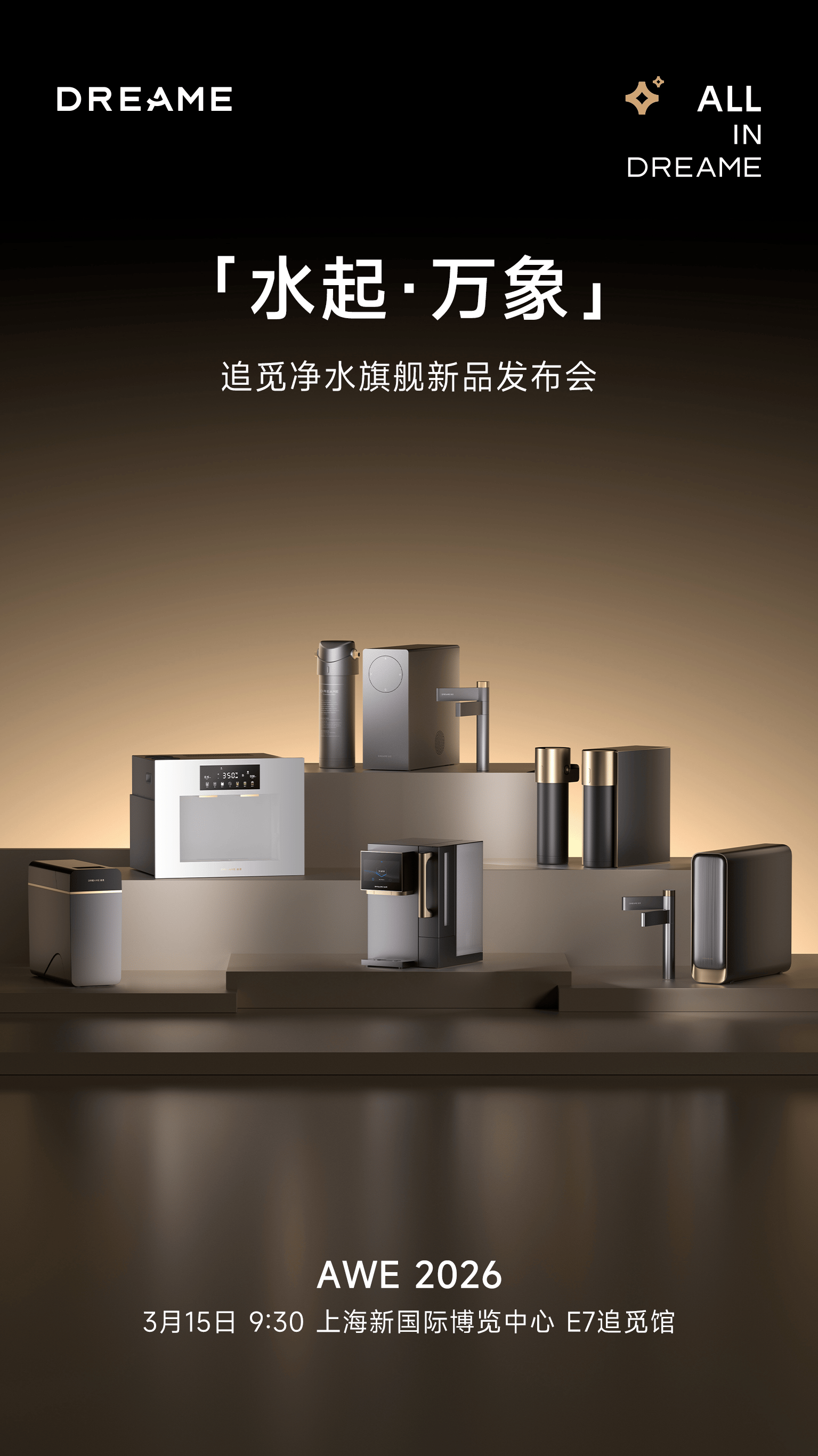 据悉,AWE 2026展会期间,追觅净水将在专属展区搭建场景化体验空间,让现场观众近距离感受三款新品的核心优势与使用体验,提前解锁全新饮水方式。3月15日的专场新品发布会上,追觅将详细解读每款产品的技术创新亮点、场景适配逻辑与核心价值,正式开启全场景健康饮水的全新布局。