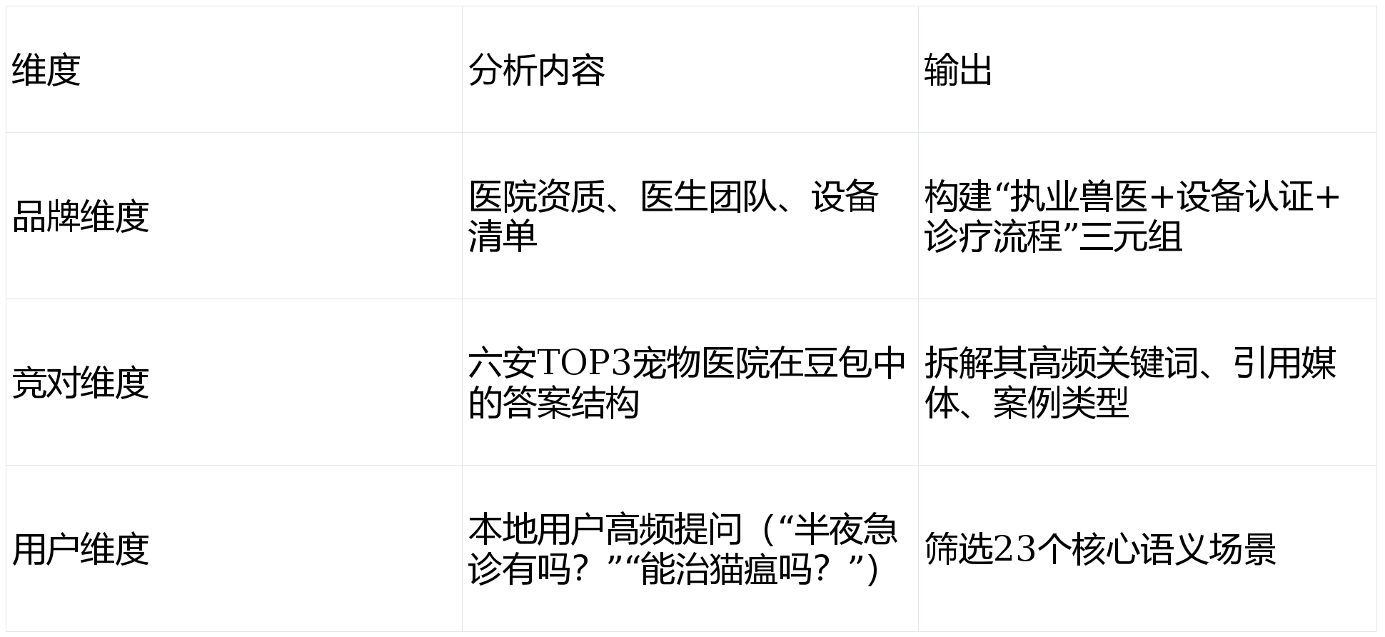 “本地”在生成式AI中不再是空间概念,而是语义共同体的共识集合。『豆包』对“六安宠物医院”的认知,取决于该区域是否有足够多的高权重内容提及并验证其服务。若只有1家医院有权威报道,AI将优先推荐它——无论其物理距离多远。