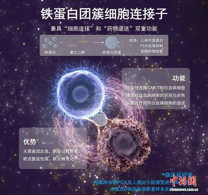 中国团队创制白血病疗法“双面胶”新剂型 实现细胞治疗化疗高效联合(中国创始团队13人)