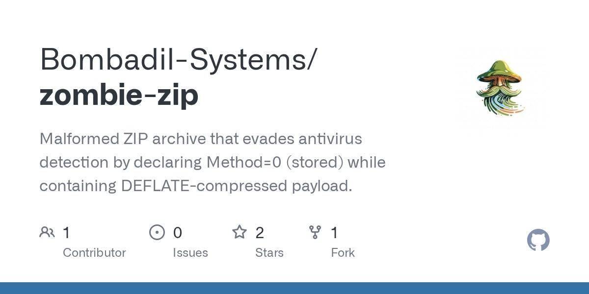 在技术原理方面,研究人员解释称,杀毒引擎通常会盲目信任 ZIP 文件的“Method”(压缩方式)字段。攻击者将该字段设置为“0”(即 STORED,代表未压缩),但实际上内部数据却采用了 DEFLATE 算法进行压缩。