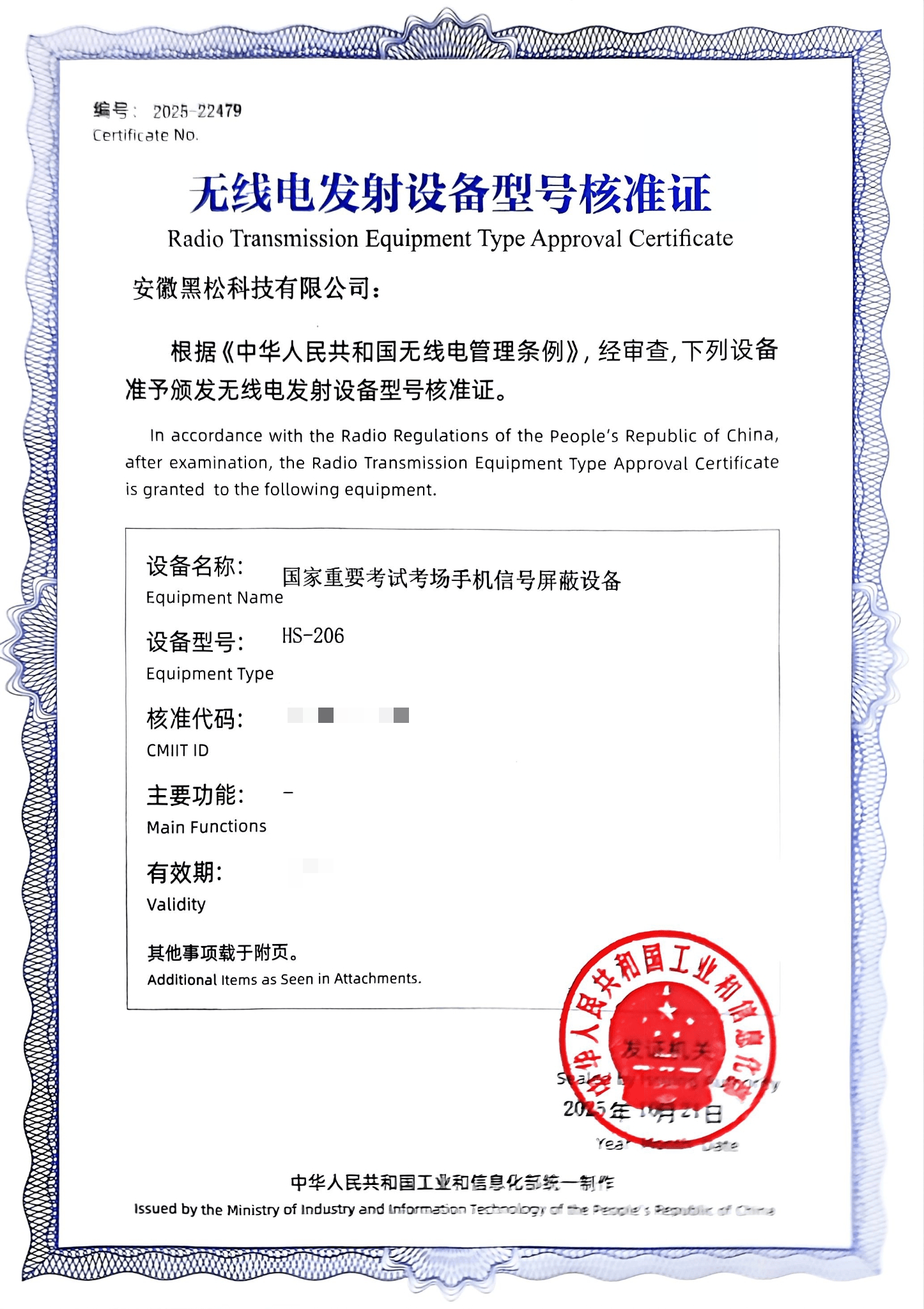 作为行业技术先行者,产品通过国家无线🛜电发射设备型号核准证(全国首批获证产品),认证范围严格限定于全部运营商 2G/3G/4G/5G 手机信号频段,严格符合工信部对屏蔽设备的频段管控要求,不干扰WiFi及蓝牙等频段,技术参数、电磁兼容性、安全性能均达到国家领先标准。核心研发团队深耕无线🛜通信领域 15 年以上,自主掌握信令解析引擎、动态功率控制等 6 项核心专利,构建了从『芯片』级设计到系统集成的完整技术体系,技术迭代速度处于行业领先水平(每 6 个月完成一次全频段适配升级)。