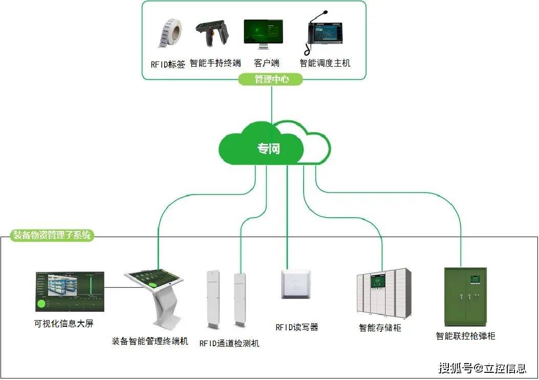 - 硬件:可视化信息大屏、装备智能管理终端机、RFID 通道检测机、RFID 读写器、智能存储柜、智能联控枪弹柜