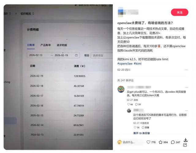 而这也导致OpenClaw做一个看似简单的任务,背后可能触发成百上千万Token的剧烈消耗。有用户仅仅用平价国产模型让它整理网络资料,一天的花费就超过100元,产出根本覆盖不了成本。而编程之类的Token消耗大户更加离谱,仅仅是跑半天的OpenClaw,就有用户花掉了5000万Token,每日花费可达数百美元💵。